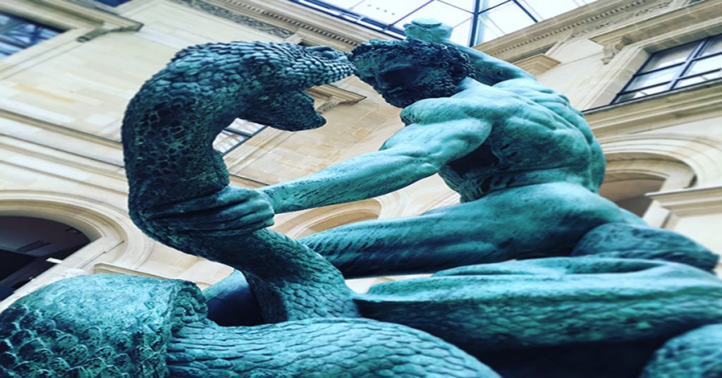 The hero archetype must battle with the dark powers of the unconscious, setting free the treasures of new content and new life from the underworld. He emerges as a newborn, rebirthed into a greater consciousness at the risk of his life. Going through primitive rites of passage intended to strengthen the ego of the initiate. The purpose of the ancient mysteries was to reignite the wholeness of the psyche, so it would no longer be vulnerable to the fragmenting effects of the dark feminine. The hero`s deed always consists of stealing something from the depths of the unconscious, whose symbol is the great mother, and bringing what he has stolen to the light of consciousness and form.