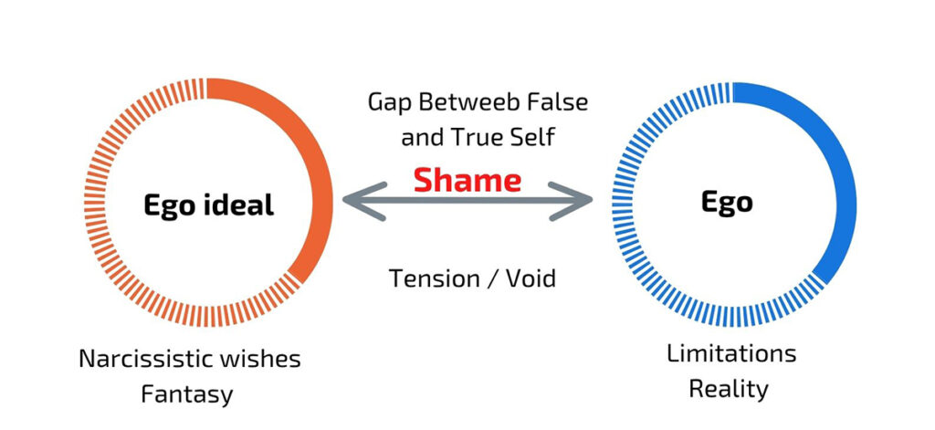 The person strip shimself of libido to the benefit of the love object, who is admired and overestimated, whilst the subject is diminished and devalued. Love is a feeling of elation, via narc projection onto each other, basking in the narc admiration. They share a state of fused exaltation that enhances the value of both, which excuses anything, even crimes of passion and emotional/physical abuse. The love object acts as a twofold mirror of oneself, whereby one may belittle oneself to accentuate the grandeur of one’s own reflection. Narcissism as an agency remains constant, infinite and limitless, while the libidinal charge (instinctual impulse ) oscillates, depending on the response of the object. narc has its own instinctual energy, which is in constant conflict with reality and sometimes opposes the ego rather than supports it. The reality principle is rejected and denied by the maintenance of an illusion that verges on delusion. The predominance of adolescent characteristics and narc dominance over the ego, which holds contempt for the central agency (Self), whose task is to activate and integrate the whole personality.